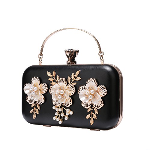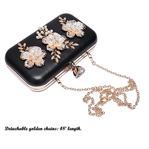-. Feature : ATTRACTIVE APPEARANCE-The clutch is made of superior PU leather and metal, decorated with flower and pearl,triangle rhinestone closure. / ROOMY STORAGE-The clutch is so large can hold iphone 7 plus, jewelry, keys, car keys perfume, lipstick, cash, etc. / WEARING FOR YOUR PREFERENCE-With metal handle,can be clutch by tote and 48 inch chain,can be worn as crossbody bag. / PERFECT DIMENSION-20*4.5*12cm/7.9* 1.8*4.7 inch,with 48 inch chain.Perfect for ladies and girls. / SUITABLE FOR-Night out,prom,cocktail party,date,banquet,wedding party,family reunion,etc.
