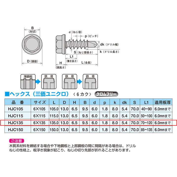 ●薄鋼板+鉄骨用ドリルビス 鉄骨+鉄骨用ドリルビス