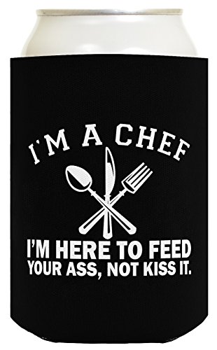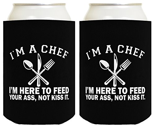 Funny Beer Coolie Chef Gift Here To Feed You 2 Pack Can Coolies Drink Coolers Black