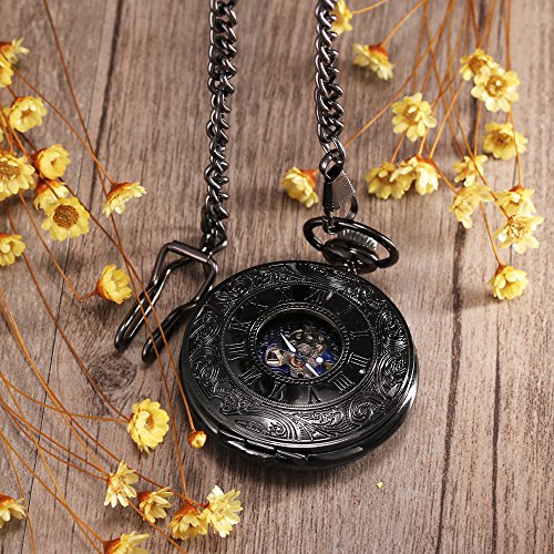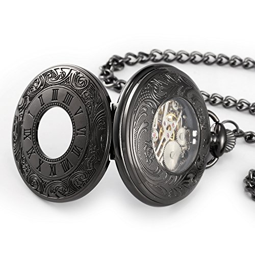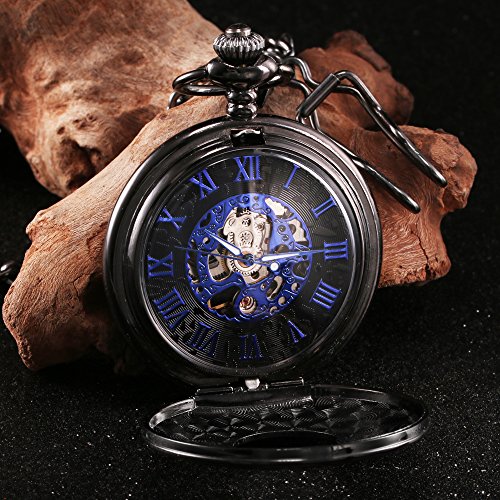 -. Binding : Watch -. Brand : Sinopic -. Color : Black -. Department : Unisex-adult -. EAN : 0735346313063 -. Feature : Perfect hand wound pocket watch as gift for special days like Black Friday, Halloween, Thanksgiving, and Christmas! / Half hunter steampunk chrome plated case with mechanical movement and blue roman numerals and skeleton black dial display for Sinopic brand-new antique victorian pocket watch. / Super harmony with the perfect combination of vintage chrome case treated by anti scraping process and prettily engraved with flowers on the back . / Winder is At 12 O'clock Position and please wind up in a clockwise direction .Every time a wind-up skeleton pocket watch could work for 24 hours . / Comes with durable metal chain(length:14.8 inches) and 1 Year Guarantee And Branded Packaging . -. Label : Sinopic -. Manufacturer : Sinopic -. Model : 30010071 -. MPN : 30010071 -. PackageQuantity : 1 -. PartNumber : 30010071 -. ProductGroup : Watch -. ProductTypeName : WATCH -. Publisher : Sinopic -. Studio : Sinopic -. Title : Sinopic Classic Pocket Watch for Men with Vintage Blue Roman Numerals Skeleton Black Dial with Chain -. UPC : 735346313063