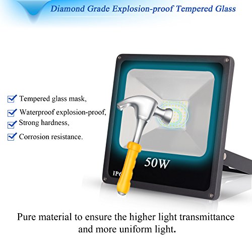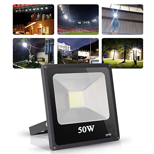 Roleadro 50W LED Flood Lights Outdoor Security Light, 250W Halogen Equivalent, 3700lm, Daylight White 6000K, Waterproof IP66, Floodlight Lamp