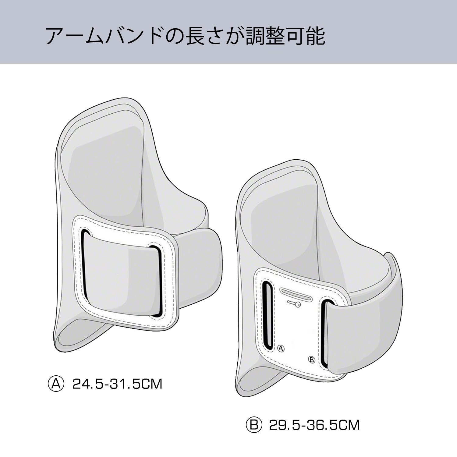 A: 24.5 - 31.5 CM / B: 29.5 - 36.5 CM.