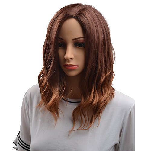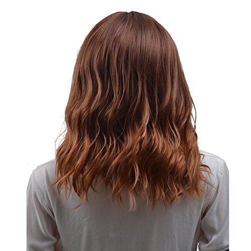 BERON 14" Women Girls Short Curly Wavy Wig Rose Net with Wig Cap (Brown)