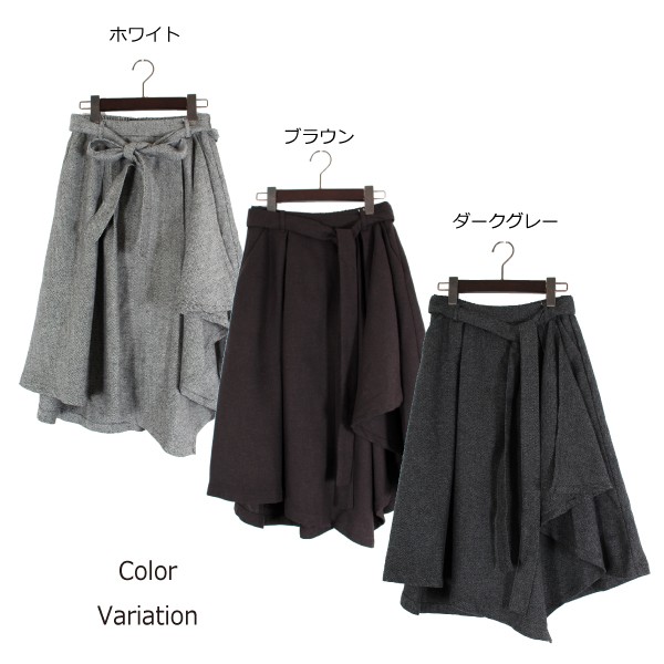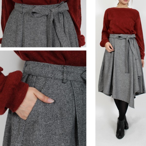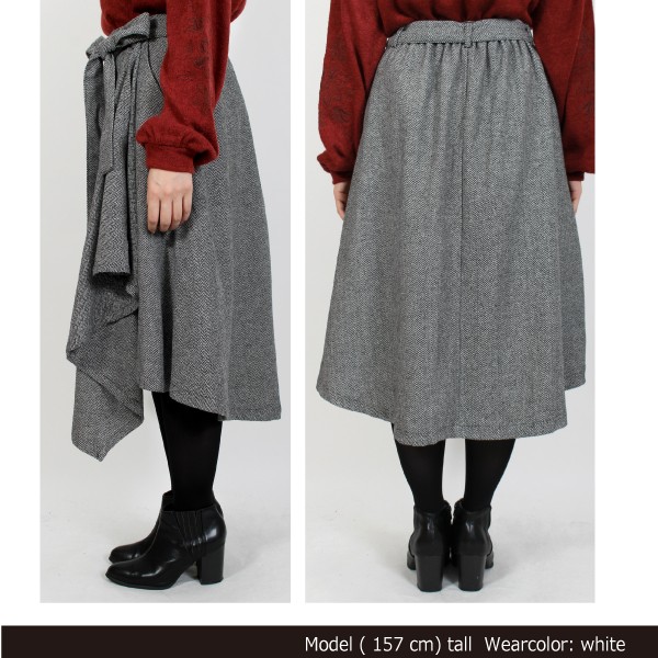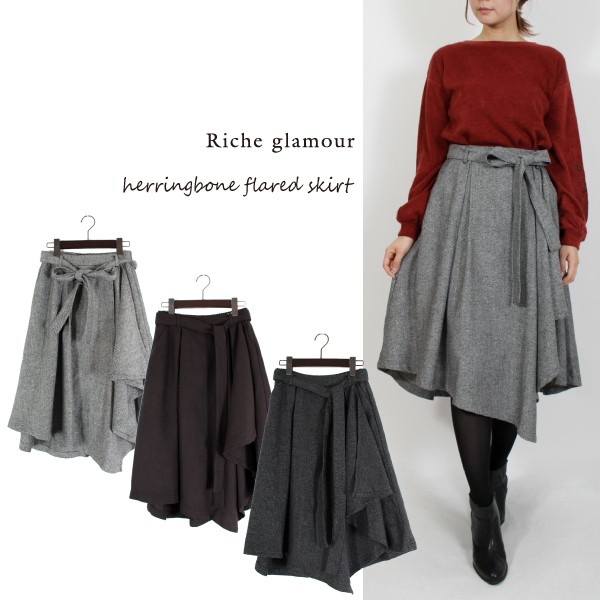 Tヘリンボーン タックアシンメトリー フレアスカート☆秋冬らしいカラー展開がこれからの季節にピッタリ◎アシンメトリーのシルエットが特徴の人気スカートです★裏地付きです!Mサイズ