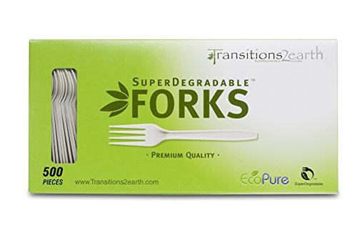 BIODEGRADABLE – LAB TESTED – Transitions2earth™ premium quality utensils and cutlery have been shown to biodegrade 13% in 59 weeks. Tested using the ASTM D5511 test under conditions that simulate both wetter and biologically active landfills. Wetter or biologically active landfills may not exist in your area. The stated rate and extent of degradation do not mean that the product will continue to decompose or decompose completely.