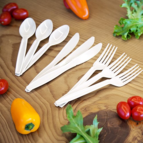 HIGH HEAT STABLE & SUPER STRONG – Transitions2earth™ premium quality utensils and cutlery will not melt, deform or dissolve into your food even in very hot foods and soups. Won’t bend or collapse. Stands up to repeated use in all types of foods.