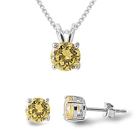 -. Title : Simulated Yellow Topaz Sterling Silver Necklace & Earrings Set