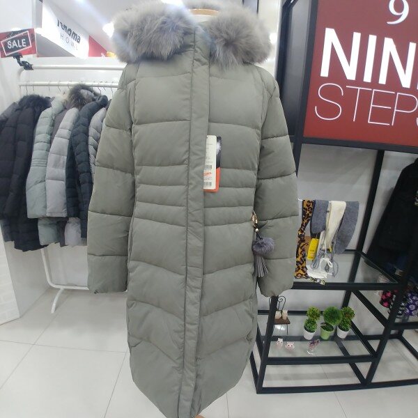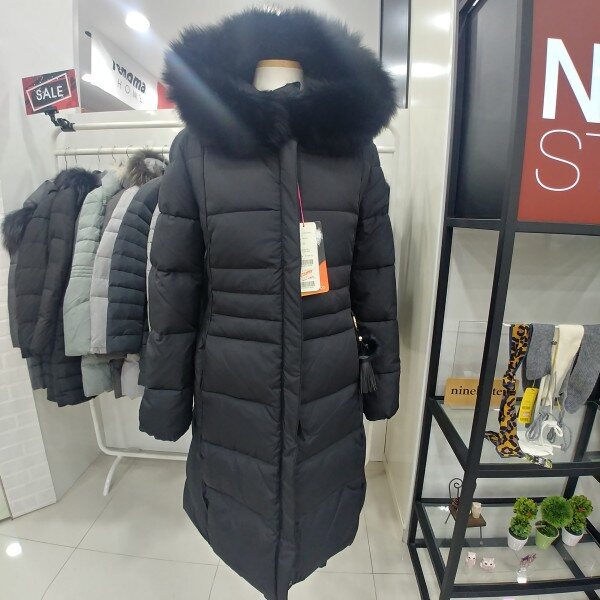 풍성한 천연 폭스퍼로 고급스러움을 한껏 표현한 폭스 후드삥줄 롱다운 자켓 허리라인이 슬림하게 강조되어 여성스러움이 물씬 느껴지며 포켓에 있는 태슬장식이 큐티하고 고급스러움이 한층 더해줘요