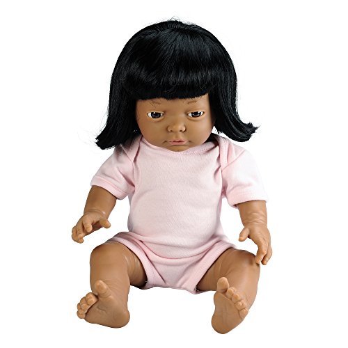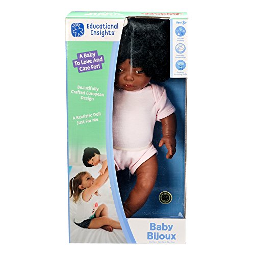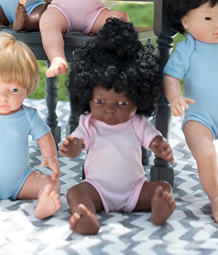 Encourage kids’ natural curiosity about bodies and promote nurturing-based imaginative play with beautifully crafted, anatomically correct Baby Bijoux dolls! The deluxe European craftsmanship delivers realistic baby details and just-like-me skin tones and hair types so kids can easily connect and empathize. A light, vanilla scent adds to the adorable appeal, and movable arms and legs make these beautiful babies even more realistic! Measuring 15.75” tall, vinyl dolls are easy to clean and carry, so little ones can take them wherever they go. Celebrate multi-cultural diversity and encourage kindness and care with Baby Bijoux!Feature