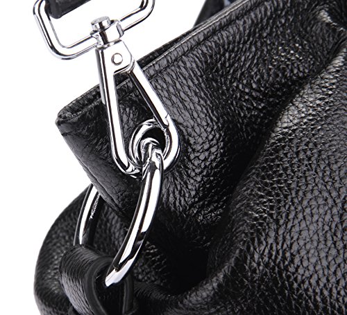 -. Feature : [Material]: Top Layer Cowhide Leather.Silver Hardware & Durable Lining. / [Interior Pocket]: A main zippered pocket. Including 1 inner zipper pocket a interior compartment, one with a cell phone pocket and ID card slot, and the other with a small zipper pocket. / [Exterior Pockets]: A Rear Zippered Pocket(5.11 x 6.69in) easy taking things(cell phone, keys, money, card and so on) with or out. / [Strap]: Double handle(5.51in, Long enough to put on shoulder) with a removable and adjustable long shoulder strap(45.66in-51.57). Convenient & Comfortable to wear in 3 ways: Tote, Shoulder and Cross Body. / [Dimension]: (L)13.57 x(H) 10.43 x (W) 5.51" in and the weight is 2.52 pounds(Please allow 0.3-0.9 in size error due to manual measurement. )
