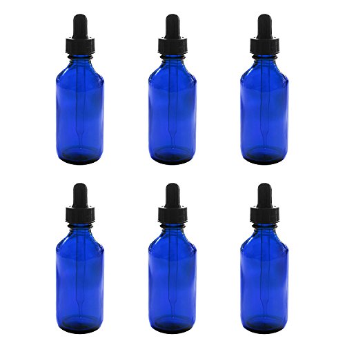 2oz Blue Glass Bottles with Glass Eye Dropper Dispenser for Essential Oils, Colognes & Perfumes, Chemistry Lab Chemicals (6 Pack)