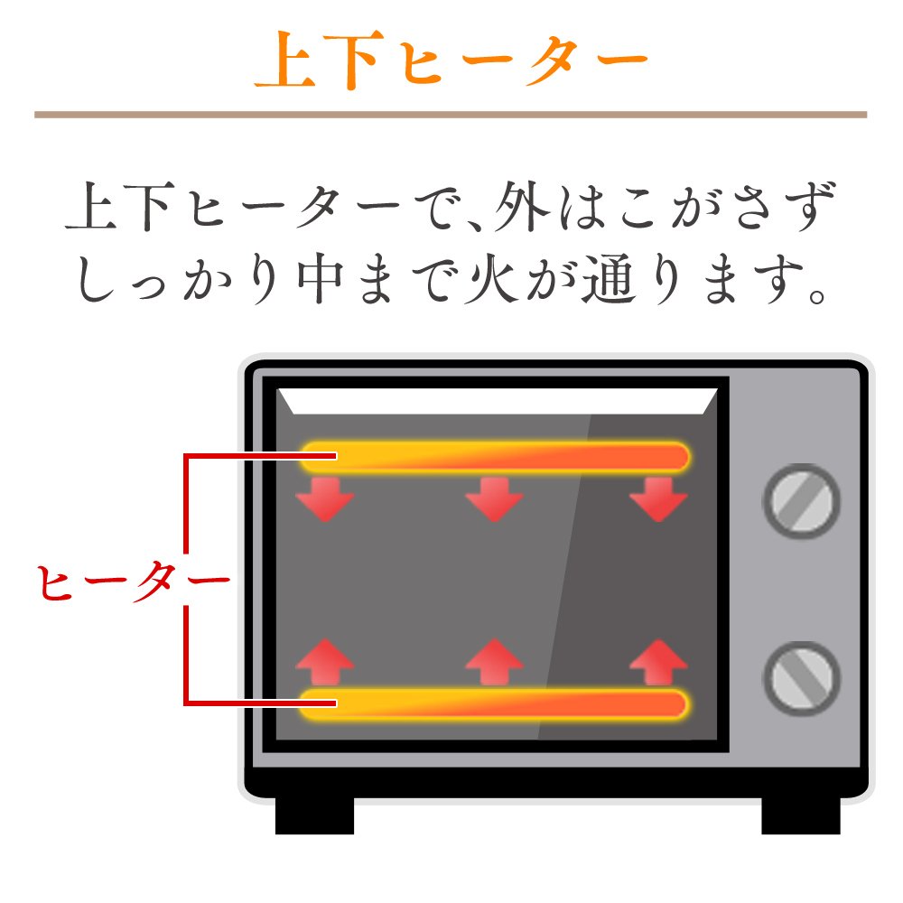 Two each of the top and bottom, 4 heaters in total are heated evenly, baked unevenness is suppressed and baked.