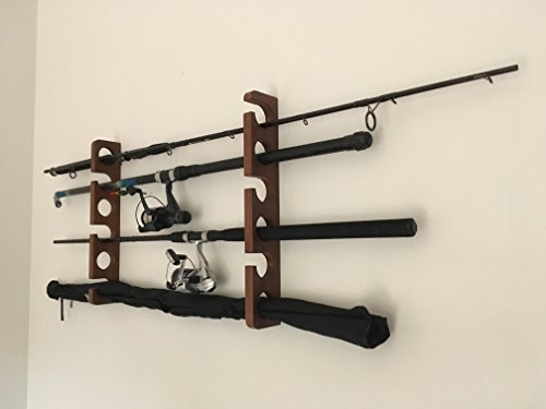 -. Feature : Handcrafted from the natural Oak Wood - wall mounting / Smooth finish and nice look / Can hold six fishing rods / Specious design (fresh, saltwater and telescopic rods & reels combos) / Very easy to mount. More information on FACEBOOK: @fishingRack