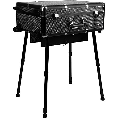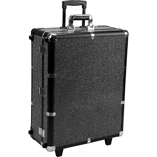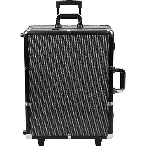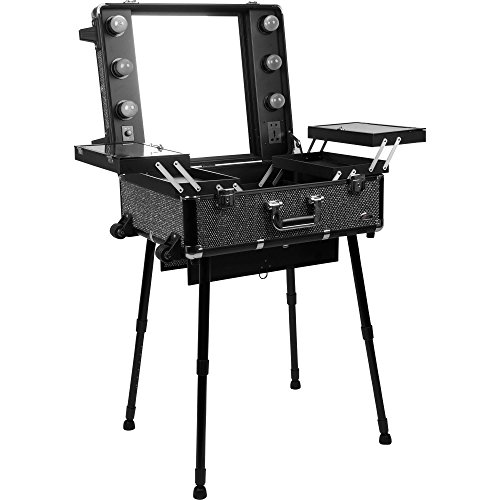 SUNRISE C6010 Lighted Makeup Case on Wheels, Portable Studio, 4 Trays and 1 Brush Tray, Dimmer Switch, Locking, Black Krystal