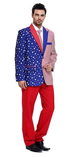 -. Brand : YOU LOOK UGLY TODAY -. Color : Multicolored-us Flag -. Department : mens -. EAN : 8438567097409 -. Feature : 1.GET MORE FOR LESS. Enjoy the benefit of premium quality fabric at an affordable price. Our suit is carefully crafted from a superior lightweight 100% polyester fabric that is durable and will wear well for years to come. / 2.STAND OUT IN STYLE. Benefit from great style for any occasion. Boasting a classic design in a standard regular fit and featuring a unique and playful pattern, the suit is ideal for festive season fun or a dress-up party. / 3.COMFORT IS KING. Take advantage of top-notch tailoring for a look that's not just eye-catching, but comfortable too. Trousers are fitted with an adjustable elastic waistband for optimum comfort and fit. / 4.OWN THE LOOK. The set includes an elegant two-button suit jacket with two side pockets, classic peak lapels and inner side vents, smart trousers and a matching patterned tie to complete the look. / 5.EASY CARE DOES IT. No more trips to the dry cleaners. Save both time and money. Our suit is machine washable for the ultimate in ease and convenience.Notice: please have a look at our size chart on the left image to see which of our 5 different sizes would suit you best. The design allows for your local tailor to adjust the waistband and side seams. -. ProductGroup : Apparel -. ProductTypeName : ADULT_COSTUME -. Size : XX-Large -. Title : YOU LOOK UGLY TODAY Men's Festival US Flag Solid Color Bachelor Party Suit XX-Large