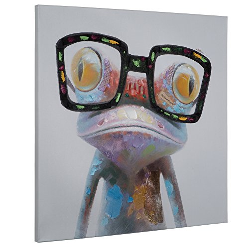 Hipster Froggy at his best. Be inspired to learn fashion with this original hand painted acrylic painting featuring a heavily textured fashionista frog in a perfectly combined yellow, brown, cream, blue, and red color. The painting includes hangers for wall mounting and inner wood frame wrapped with the canvas.Feature