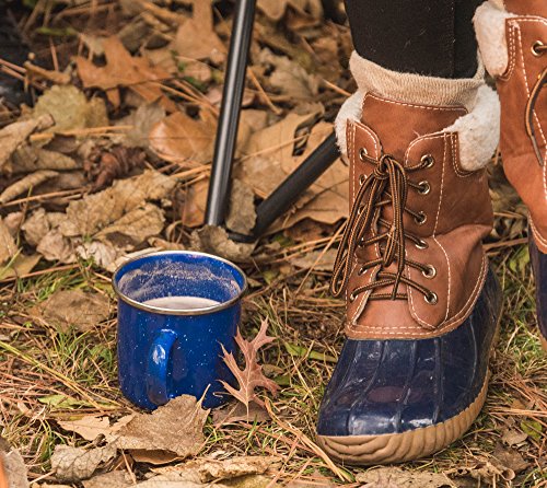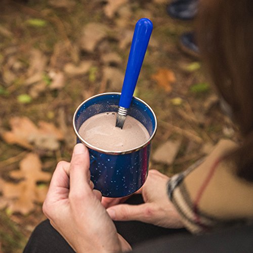 -. Feature : Includes coffee pot and four 12 oz. cups / Kiln-hardened enamel prevents chips / Stainless steel accents / Classic blue finish / Pot holds up to 8 cups