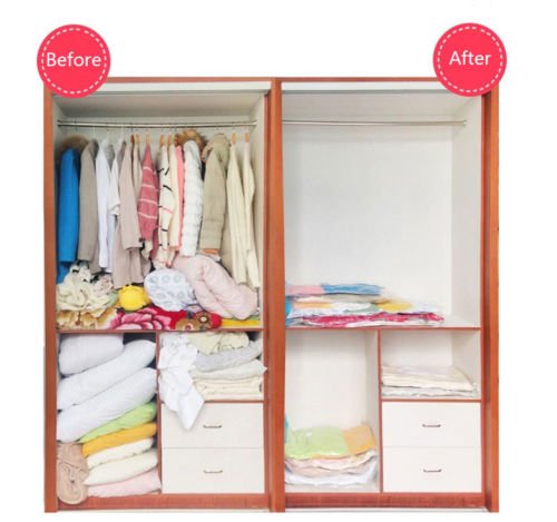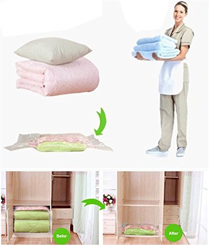 - Feature : Package Content: 4 x Storage Bags (Size: 90 x130 cm) and 1 x Vacuum Sealer / Save A Lot of Space. Extremely easy to use. / You may store clothes, blankets, comforters, pillows, etc. / Keeps everything fresh! / Protects against water, moist, bugs, moths, mildew, dirt, and odor.