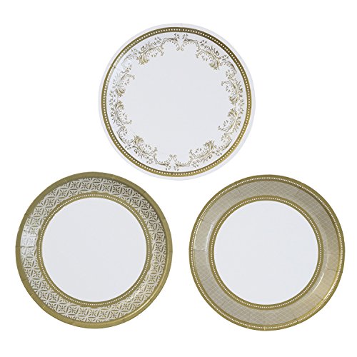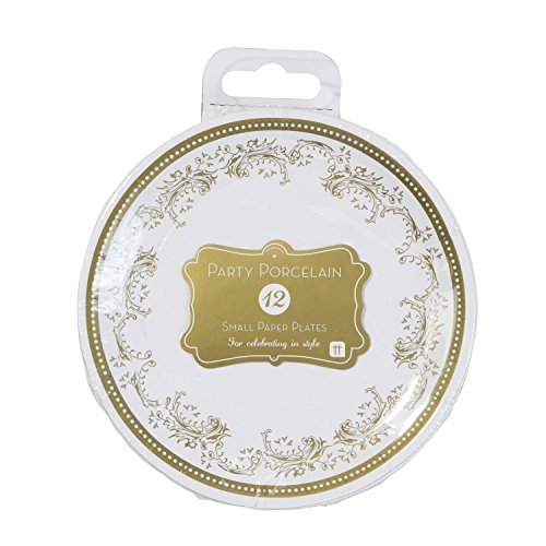 Talking Tables Party Porcelain Gold Disposable Canape Plates for a Birthday Party or General Celebration, Gold & White (12 Pack)