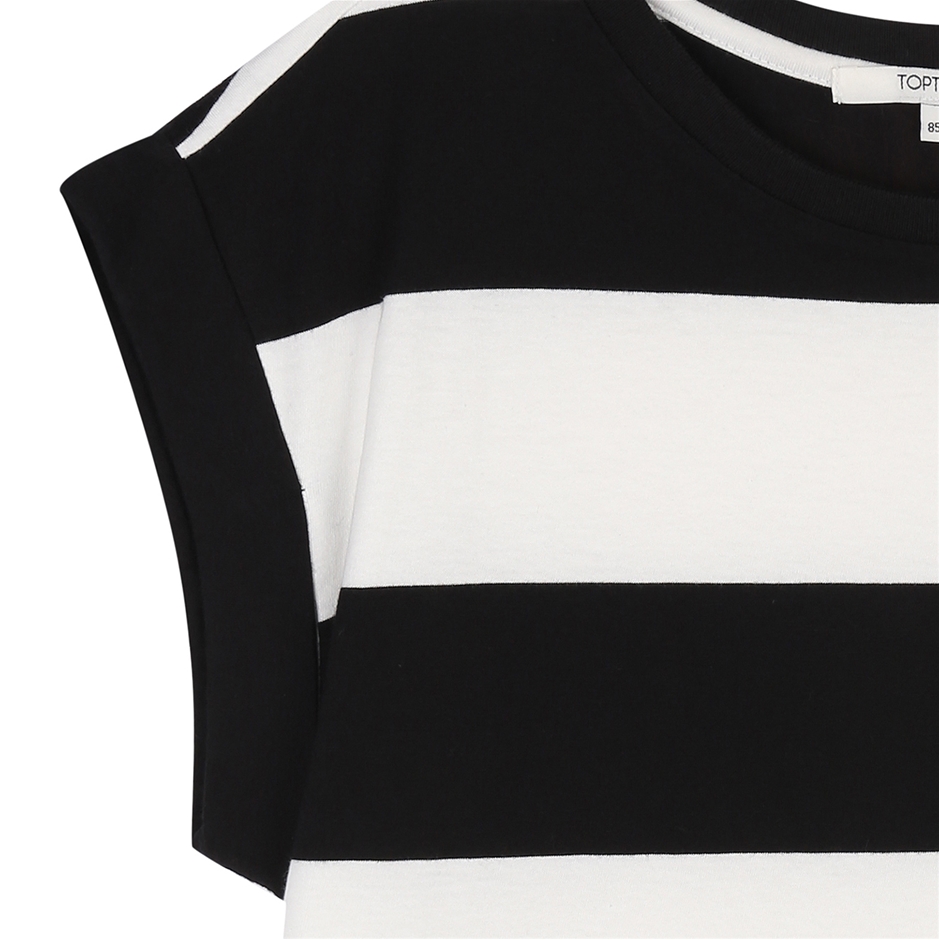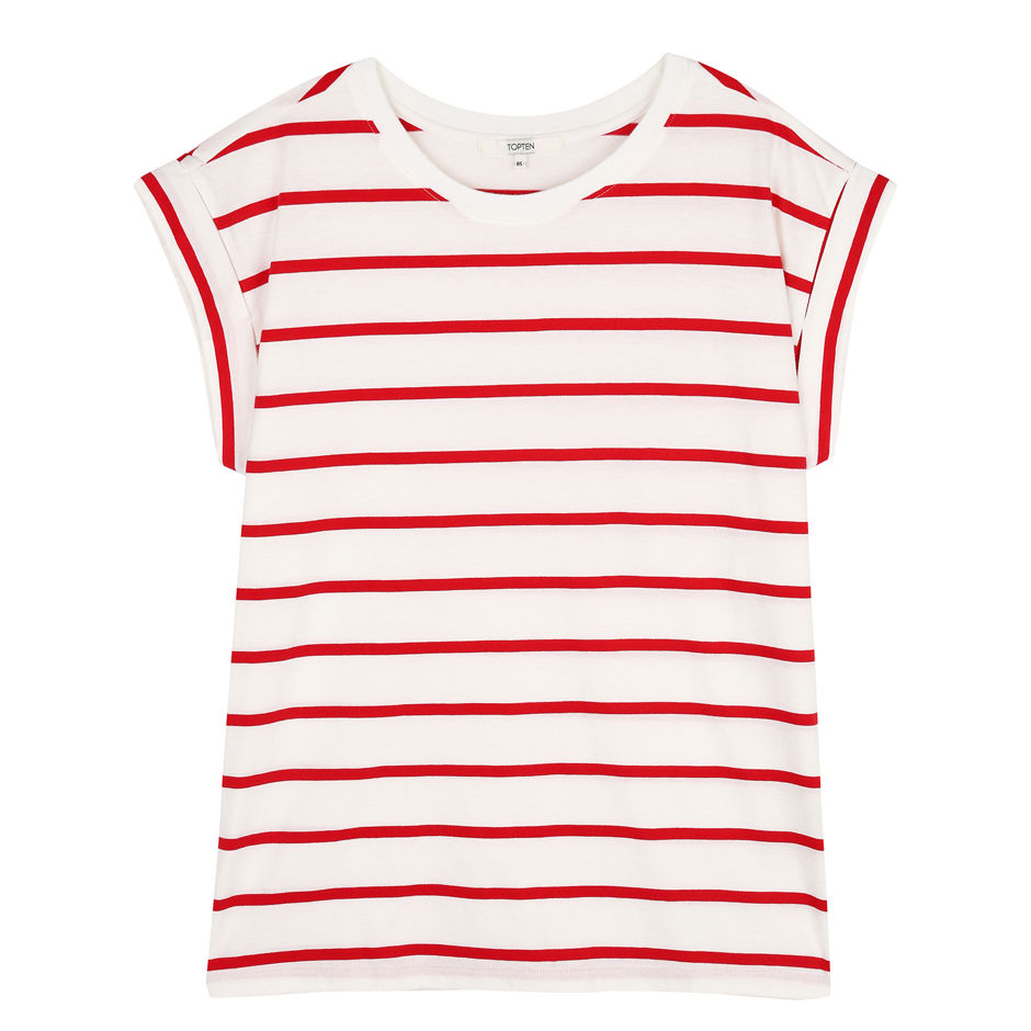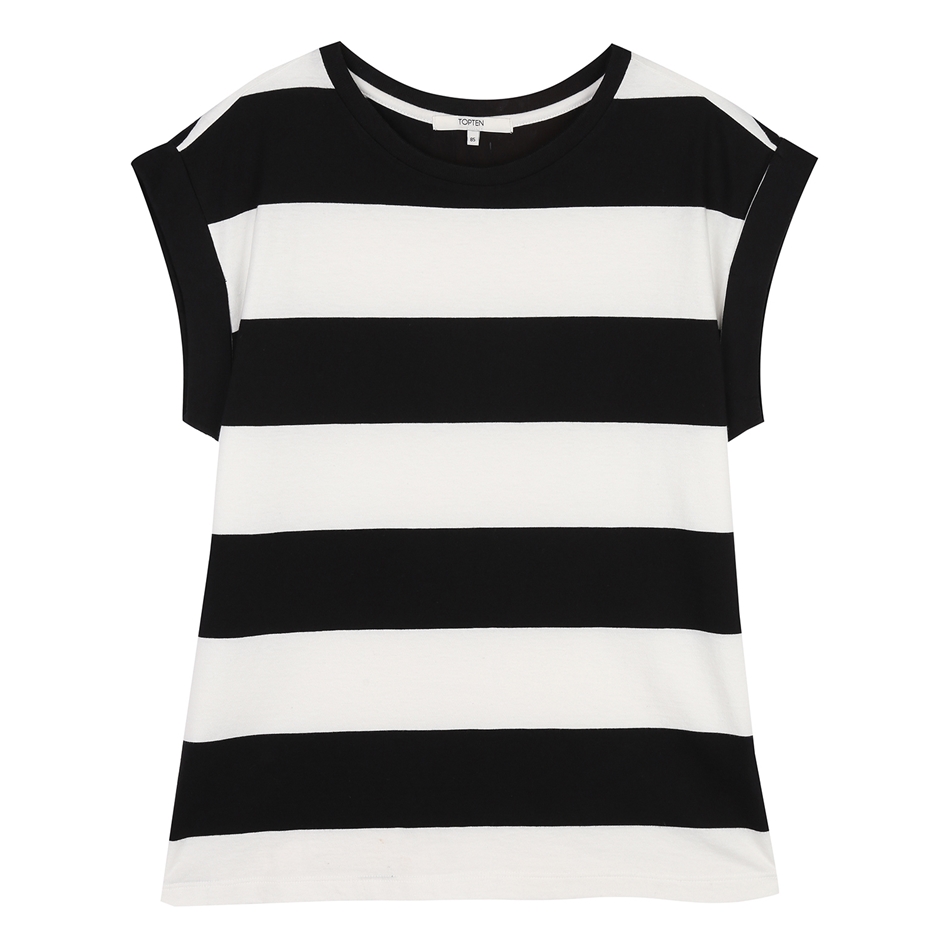 여성) 30수 싱글 소매 턴업 스트라이프 티셔츠)