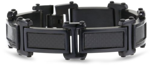 Men's Black-Tone Stainless Steel Carbon Fiber Bracelet