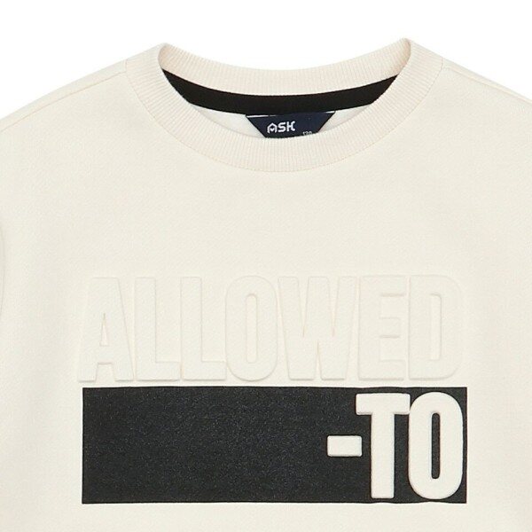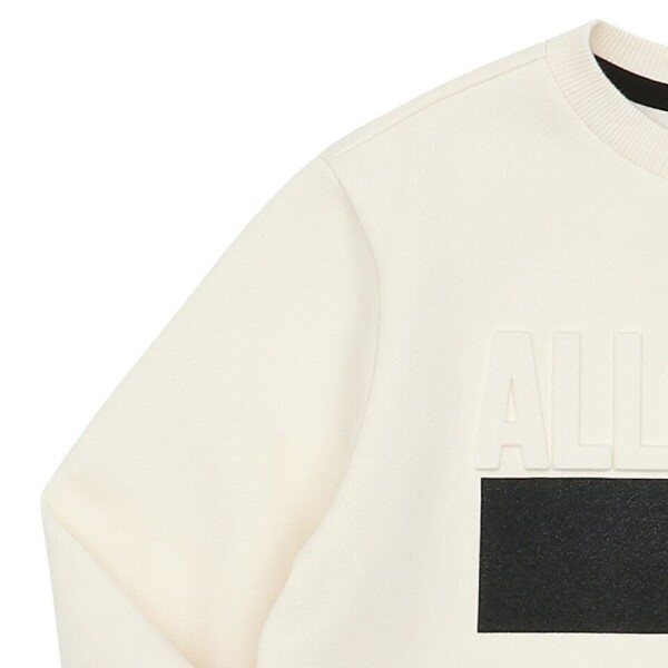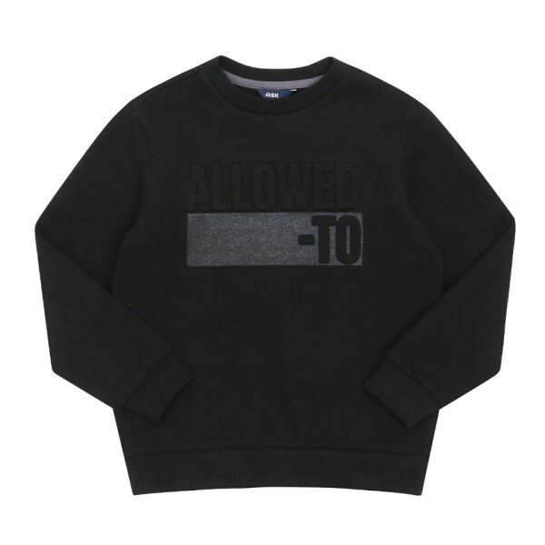 가슴의 볼륨 엠보와 사각 나염이 포인트인 깔끔한 디자인의 기모 맨투맨.