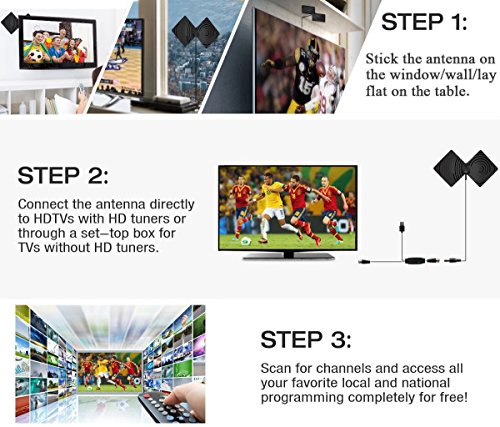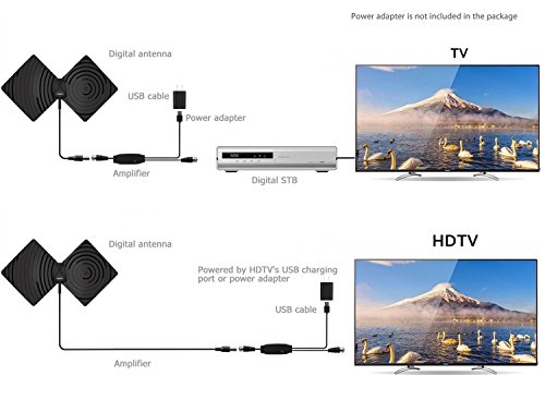 Studio : Shenzhen Xin Sheng Shang Technology Co.,Ltd Publisher : Shenzhen Xin Sheng Shang Technology Co.,Ltd Binding : Wireless Phone Accessory Product Description Specification Max Range: 50 miles / 97 km Frequency : VHF(170-240Mhz) \ UHF(470-862Mhz) VSWR : ≤2.0 : 1 Impedence : 75 Ω LNA Gain : 25dB Connectors : F Male or IEC Male Cable : 1.5C-2V / Black L=3M Polarization : Linear Operation Temperature : -45 ~ 85℃ Storage Temperature : -45 ~ 85℃ Leaf Size :310*170*0.65MM Box Size:320*180*35MM Weight:0.290KG Voltage: 5V Power Supply Connector : USB Signal Booster: F Type Coaxial Female to F Type Coaxial Male Features: Receive up to 1080p HD content from local broadcasting towers and stations for free A maximum signal range of up to 50 miles / 97km allows for great signal distances Amplify the antenna with the signal booster for stronger signals The ultra-thin design allows the antenna to fit into the design of the entertainment area Reach optimal placement areas for the best signal capture with the 10ft / 3m cable Installation 1. It can be installed in 3 simple steps: just connect the coaxial cables and AC adapter, position the antenna, scan for channels on your TV, and enjoy. 2.Paper-thin design delivers full 1080p HD to any digital-ready television. The combination of its unobtrusive design and powerful reception capabilities make the Leaf a top choice in any home. There are no exposed or distracting antenna parts. The Leaf can be easily hidden behind a picture, bookshelf, or television. Package: 1x HDTV digital antenna 1x Signal amplifier (with coaxial cables USB interface) 2x 3M double-faced adhesive paste 1x Suction bracket 1x User manual please note: without adapter in the package 0