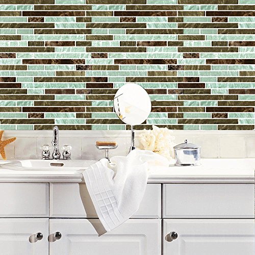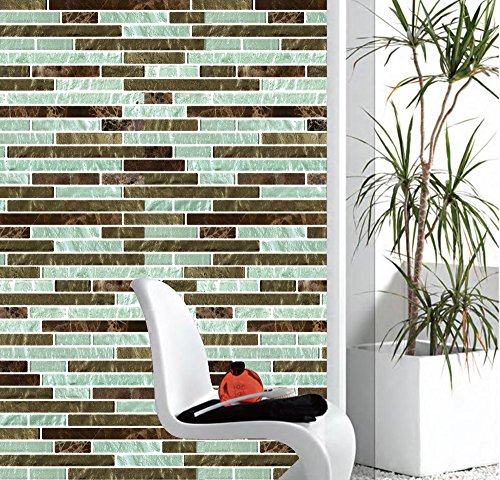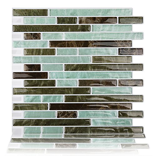 Fertel 10.5" x 10" Peel and Stick Tile Kitchen Backsplash Sticker Green Brick (6 Tiles)