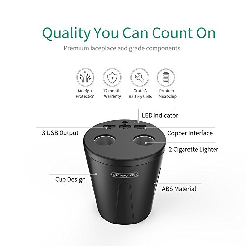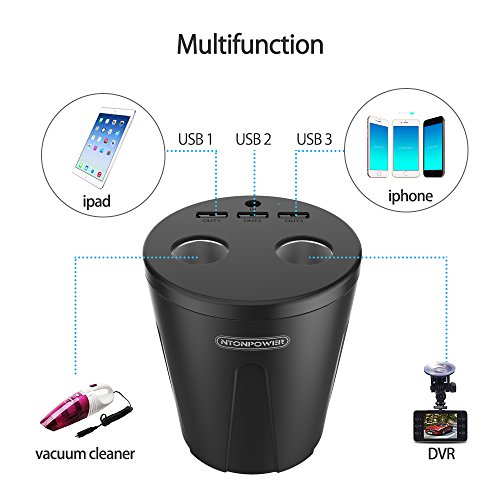 3 USB Charging Ports and 2 Cigarette Lighters: This cup charger could be used as a triple USB car charger with 2 cigarette lighters. 5 outlets create the perfect charging hub on the go for you as well as your family.