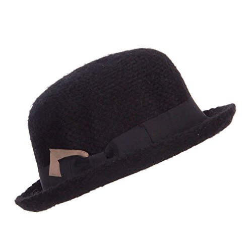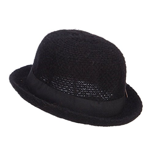 -. Binding : Apparel -. Brand : Jeanne Simmons -. Department : womens -. Feature : Made of 60% mohair and 40% acrylic. / One Size fits most women, fitting up to XL. / Fitted with an inner elastic adjustable tie. / Adult/Woman. / Crown measures 4 inches deep. -. ProductGroup : Apparel -. ProductTypeName : HAT -. Title : Women's Ribbon Band Yarn Bowler