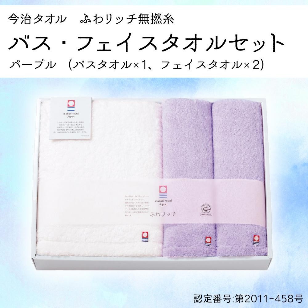 ふわふわでとろけるようなリッチテイストの、バスタオル・フェイスタオルのセットです。やさしく落ち着いたパープルは、上品で扱いやすいカラーです。 |