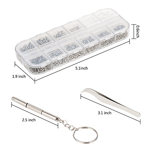 BAKTOONS 1000pcs High Quality Stainless Steel GlassesWatch Tiny Screws Nut Washer Nose Pad Assortment with Screwdriver and Tweezers Six Selected Reasons: 1) Made of high quality stainless steel and plastic material, 100% new. 2) Set of 1000 different kinds of small parts. 3) For repairing eyeglasses, sunglasses, watches or anything else that requires tiny screws. 4) Comes with a screwdriver( includes a flat head screwdriver, a phillips screwdriver, a star nut driver) and a tweezers. 5) Organized in 12 separate compartments, easy to be identified. 6) Stored in a small transparent rectangular case, easy to be carried anywhere. Product Details: Material: Screws, Nuts,Screwdriver: Stainless Steel Nose Pads: PVC Tweezers: Iron Dimensions: Case: 13 x 5 x 1.5 cm / 5.1 x 1.9 x 0.6 inches (Length x Width x Height) Screwdriver: 6.5 cm / 2.5 inches Tweezer: 8 cm / 3.1 inches Package Includes: 1000 x Screws Nuts Washers 5 x Nose Pad 1 x Screwdriver with Key Chain 1 x Tweezers 1 x Transparent Rectangular Case Notices: 1. 1-2cm error of measuring is a reasonable range due to different measurement methods. 2. Please be careful when opening the case as these screws, nuts and washers are tiny and not easy to be found back if you lose them. We are so confident in the quality of our product that we offer a 180-day satisfaction guarantee! If you are unsatisfied, simply contact us to return the product for a full refund. 0