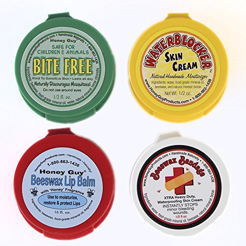 - Clear plastic travel kit contains 4 smaller plastic flip-top tubs of our major beeswax
