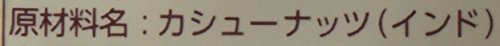 原材料:カシューナッツ(インド)、植物油脂、食塩