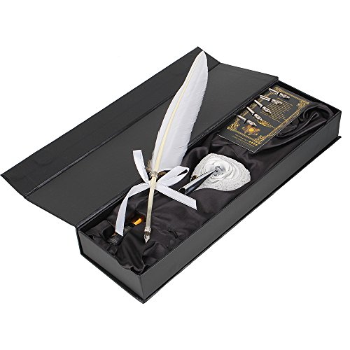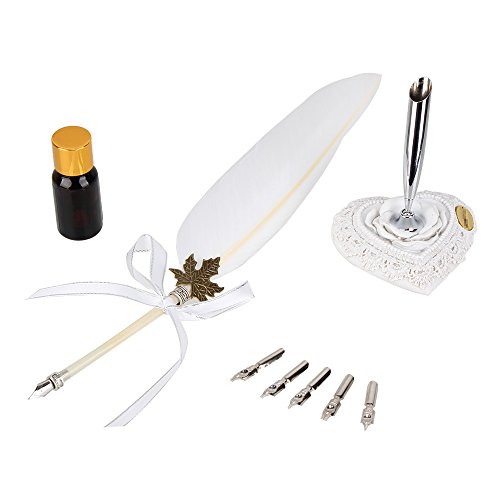 -. Title : BQLZR Swan Feather Fountain Pen Set With Ink Bottle Metal Nibs Stationery Gift Box