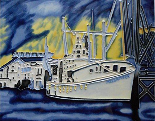 Tile Craft shrimp boat ceramic art tile 8 x 10 inches.