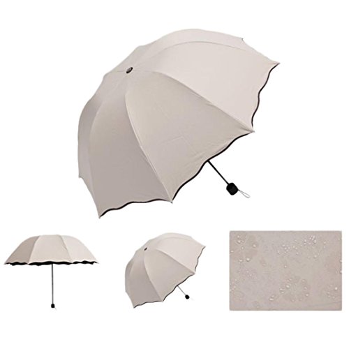 -. Feature : It appears beautiful flowers when the Umbrella surface meets water(as the picture shows, except the rainbow) . / Flouncing/Lotus leaves Elegant designed . Sun/Rain/Wind umbrella can be used all weather . / Foldable, Compact style with Umbrella bag . Material: 100% Waterproof Polyester . Material of Umbrella Frame: Alloy . / 8 Skeletons . Anti Wind: Level 6 . SPF: UPF>40 ,UVA<5% . / Expanding diameter: Approx. 89cm/35" . Expanding handle length: Approx. 65cm/25.5" . Furl Length: Approx. 24cm/9.4" .
