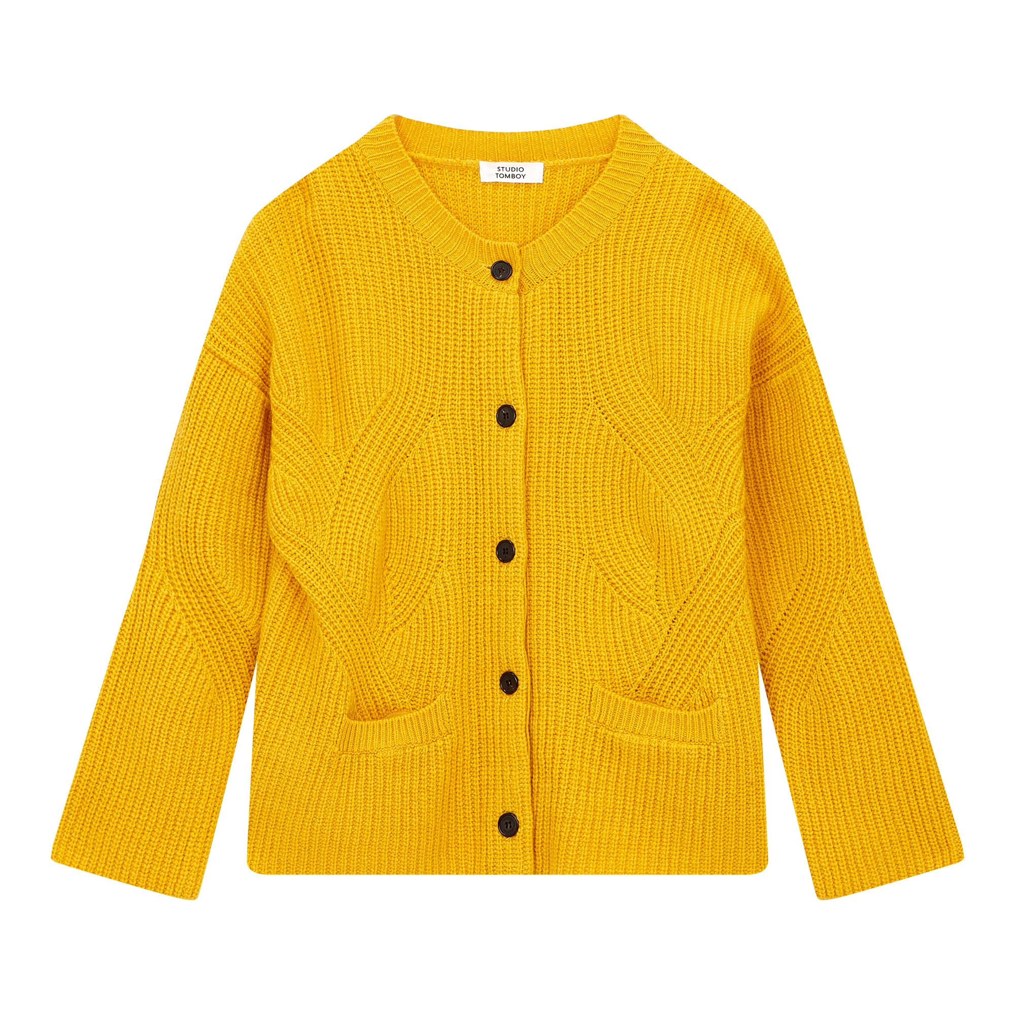 컬렉션 : 2017 Fall/Winter 디자인 포인트 : - 독특한 케이블 짜임이 돋보이는 가디건- 네크라인을 바로 감싸는 버튼 클로징 디테일로 따뜻하게 연출 가능- 다크한 톤의 컬러와 포켓 디테일로 포인트- 간절기에 심플한 아우터로 스타일링 하기 좋은 아이템 스타일링 추천 : 베이직한 원피스 혹은 티셔츠와 데님팬츠 등에 포멀하게 스타일링 할 수 있음