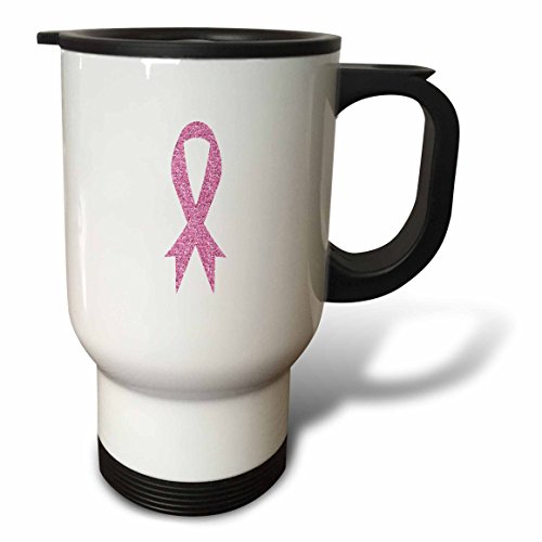 3dRose tm_123727_1 Glitter Pink Ribbon Breast Cancer Awareness Travel Mug, 14-Ounce, Stainless Steel