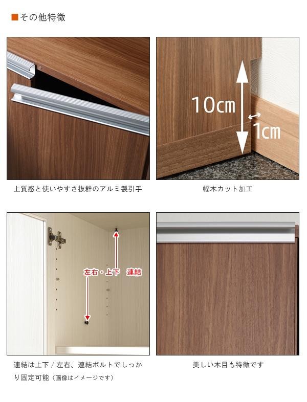 | 素材・材質 | リアルウォールナット柄特殊プリント化粧板 引手:アルミ |