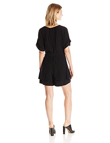 Product DescriptionLucky Brand missy short sleeve woven romper with tonal self tie detail on waistline0