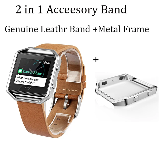 | [해외]V-MORO 정품 가죽 낙타 팔찌 스트랩 교체 밴드 금속 프레임 핏 비트 블레이즈 피트니스 시계 |
