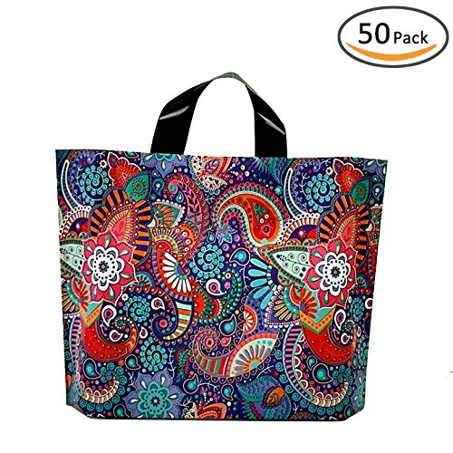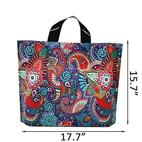 Party Bar. Colorful Recyclable Grocery Shopping Bag, Waterproof, Lightweight PE Plastic Handbags, Party Favor Tote Bags, Great Gift Bag (Fantasy)