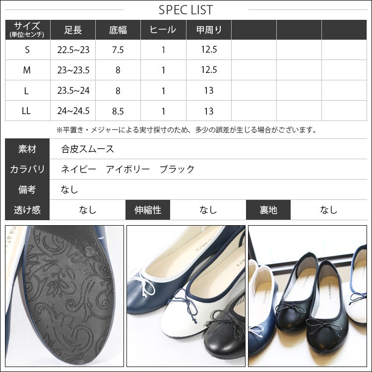 S :足長 22.5-23cm 底幅 7.5cm ヒール 1cm 甲周り 12.5cm