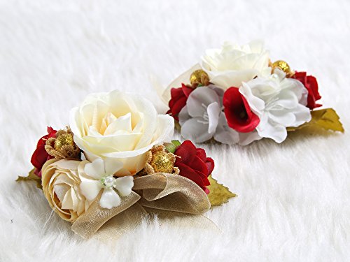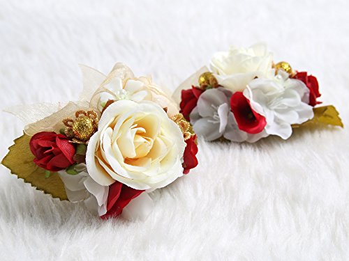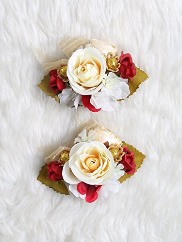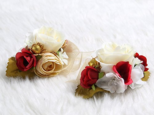 Charming Flower Boutonniere Pins for Wedding prom (2pcs) (Red theme)