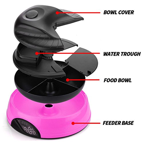 Studio : Petwant Publisher : Petwant Binding : Misc. Product Description The Perfect Pet Feeder For Your Beloved Pets! With LCD screen, our pet feeder can feed small-sized pets for up to 4 meals per day. In addition, it can control your pets' portions and the feeding schedule. It is good for controlling your pets' weight and their health. With this pet feeder, you pets can be well taken care of when you are not at home and you do not need to worry if they are hungry anymore! Specification: - Capacity: 500mL x 4 - Four separate food trays -Built-in water trough provides pets with drinking water. You can also places some ice bags to keep food fresh - Eight-seconds personal voice message can be replayed for 3 times at feeding time to let your pets know their meal is on its way! - Programmable for up to 4 different feeding times(the whole point) - LCD screen with easy operation, low battery indicator - Detachable feeding tray for easy cleaning - Four batteries required (Size C/1.5V, NOT INCLUDED) Control Panel Keys: MODE - switches between clock and feeding time display. Also increases clock time during clock / feeding time set mode SET - enters setting mode. Also confirms the time you enter and advances to next setting START NOW - starts the feeding timer immediately START TOM - starts the feeding timer the next day REC - records your personal voice message PLAY - plays back your recorded voice message Lo BaTT - low battery indicator Mic - microphone Package Includes: 1 x Feeder 1 x Instruction Manual