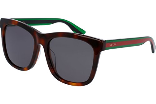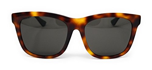 Gucci Sunglasses. Series number: GG0057SK. Color code: 003. Size: 56. Shape: Square. Lens Width: 56 mm. Lens Bridge: 18 mm. Arm Length: 145 mm. 100% UV protection. Non-Polarized. Frame Material: Acetate. Frame Color: Havana. Lenses Type: Grey. UPC/EAN code: 889652050553. Gucci Grey Leses Square Sunglasses.Feature