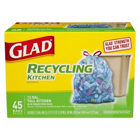 -. Title : Glad Blue Tall Kitchen Drawstring Recycling Bags 13 Gal 45 Ct