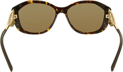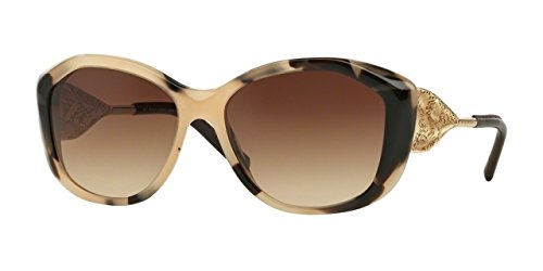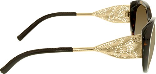Burberry BE4208QBurberry's signature gabardine fabric was invented by founder Thomas Burberry in 1879. Immortalised in its iconic trench coat, it's unmistakable. It comes to sunglasses once again in draped gold metal lasered with the distinctive diagonal twill lines. A new effect sees a romantic twist in a punctuated floral lace effect, seen in Christopher Bailey's updated trench coats. A dark tortoise front compliments all skin tones. Chocolate tips made from real leather reference the trench coat buckle. Tubular stems are engraved with Burberry lettering. Handcrafted in Italy. UV400 protective lenses. With a two-year manufacturer's warranty.Colour code: 3002/73Colour: Brown / TortoiseLens category: 3