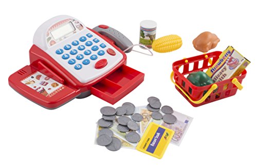 Studio : Vokodo Publisher : Vokodo Binding : Toy Product Description Toy Cash Register Cashier Playset, Pretend Play Set For Kids, Colorful Children's Supermarket Checkout Toy With Microphone Sounds | Ideal Gift For Toddlers Pre-Schoolers (White/Red) - Real like cash register Toy play-set with lcd display. Toy Cash Register will Teach your child basic math skills like counting - cash register toy, your toddler will love to add, subtract, divide and multiply. Little grocery store fully functional calculator! - the pretend play supermarket checkout set includes a conveyor belt, a credit card scanner, a microphone, a grocery basket and fake money! Our incredible educational cashier checkout toy set, cash register play set requires 2 aa batteries to run (not included) - recommended for ages 3 years old boys and girls. Supermarket fun with your kids! - toddler, pre-schooler or grade-schooler engaged and occupied for hours! 30 DAY 100% MONEY BACK GUARANTEE: Buy with confidence! All Vokodo products are backed by Amazon 30 day return policy and fulfillment service. 0